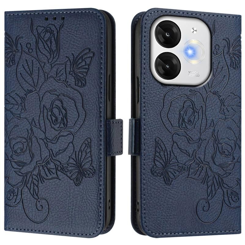 For itel A80 4G Embossed Rose RFID Anti-theft Leather Phone Case(Dark Blue)