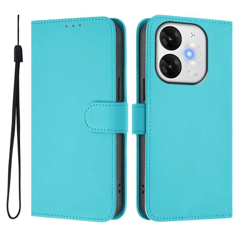 Για το itel A80 4G Skin Feel Solid Color δερμάτινη θήκη τηλεφώνου με κορδόνι (Lake Blue)