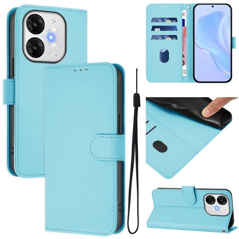 Για το itel A80 4G Skin Feel Solid Color δερμάτινη θήκη τηλεφώνου με κορδόνι (Sky Blue)