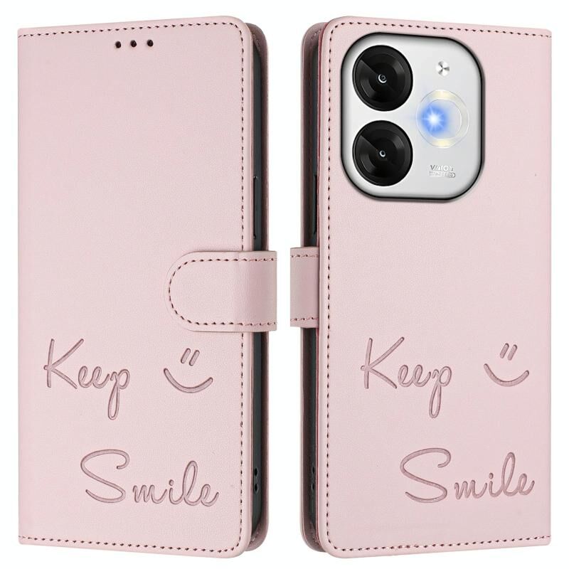 Για itel A80 4G Χαμόγελο ανάγλυφο RFID δερμάτινη θήκη τηλεφώνου (ροζ)