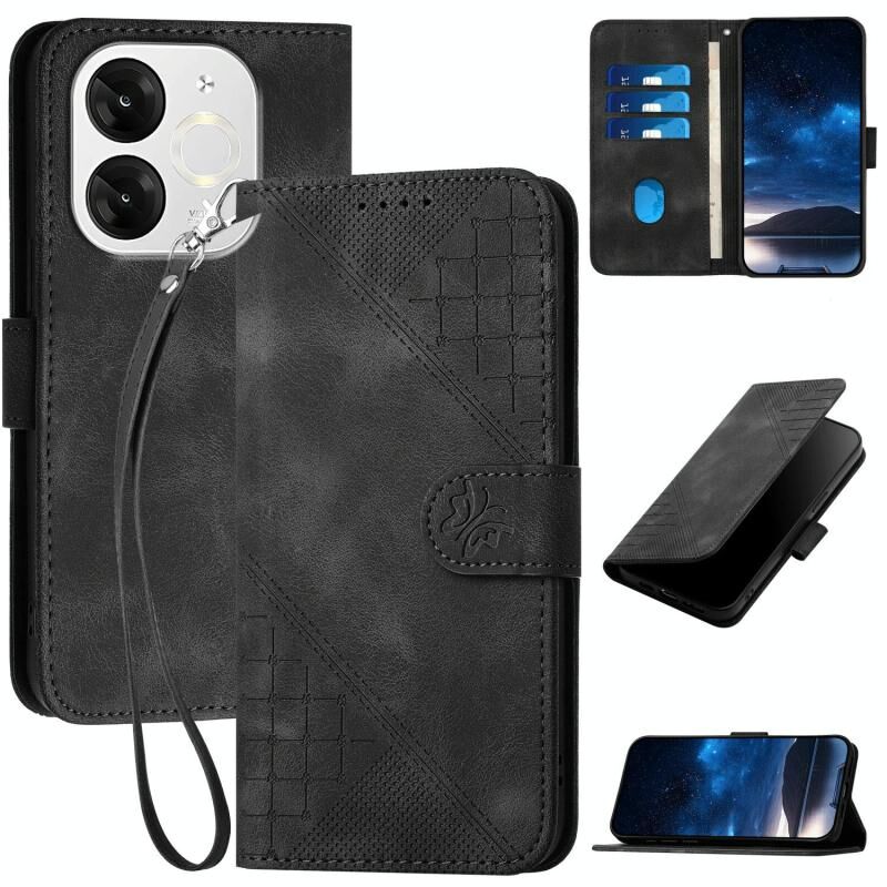 Θήκη τηλεφώνου από δέρμα με ανάγλυφο σχέδιο πλέγματος πεταλούδας για Itel A80 με κορδόνι (Σκούρο Μπλε)