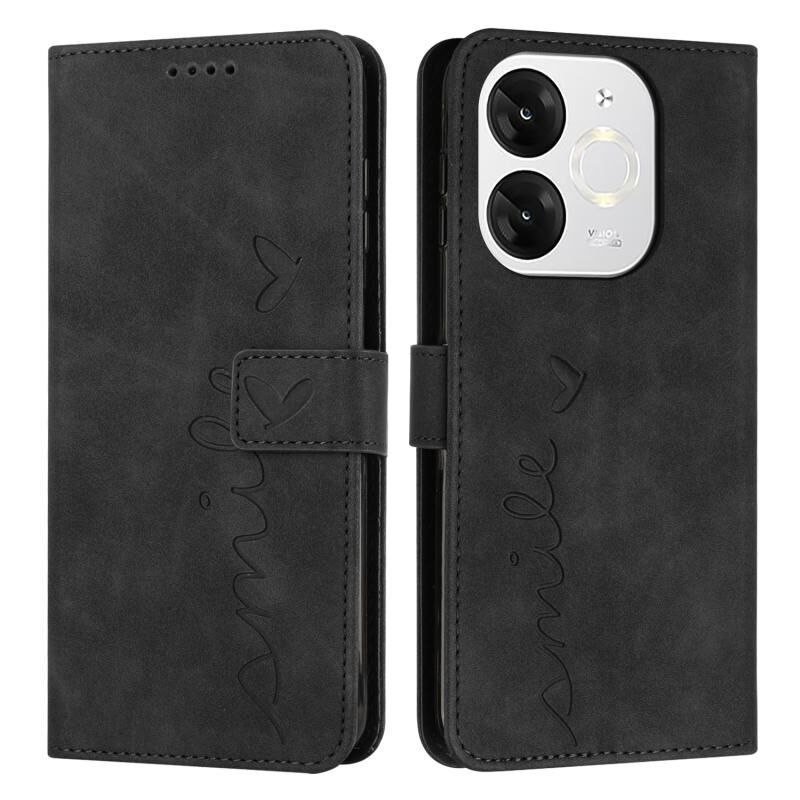 Για το itel A80 Skin Feel Heart ανάγλυφη δερμάτινη θήκη τηλεφώνου με μακρύ κορδόνι (Μαύρο)