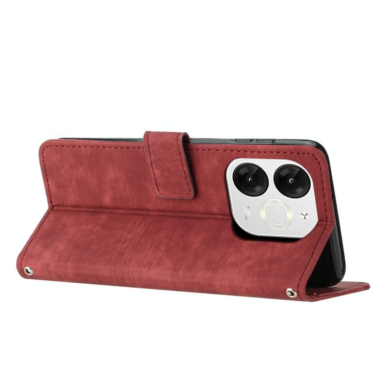 Για το itel A80 Skin Feel Stripe Pattern δερμάτινη θήκη τηλεφώνου με κορδόνι (κόκκινο)