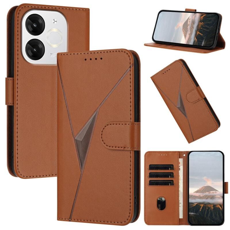 Για Itel A80 Τρίγωνο μοτίβο αγκράφα κούμπωμα δερμάτινη θήκη τηλεφώνου (καφέ)