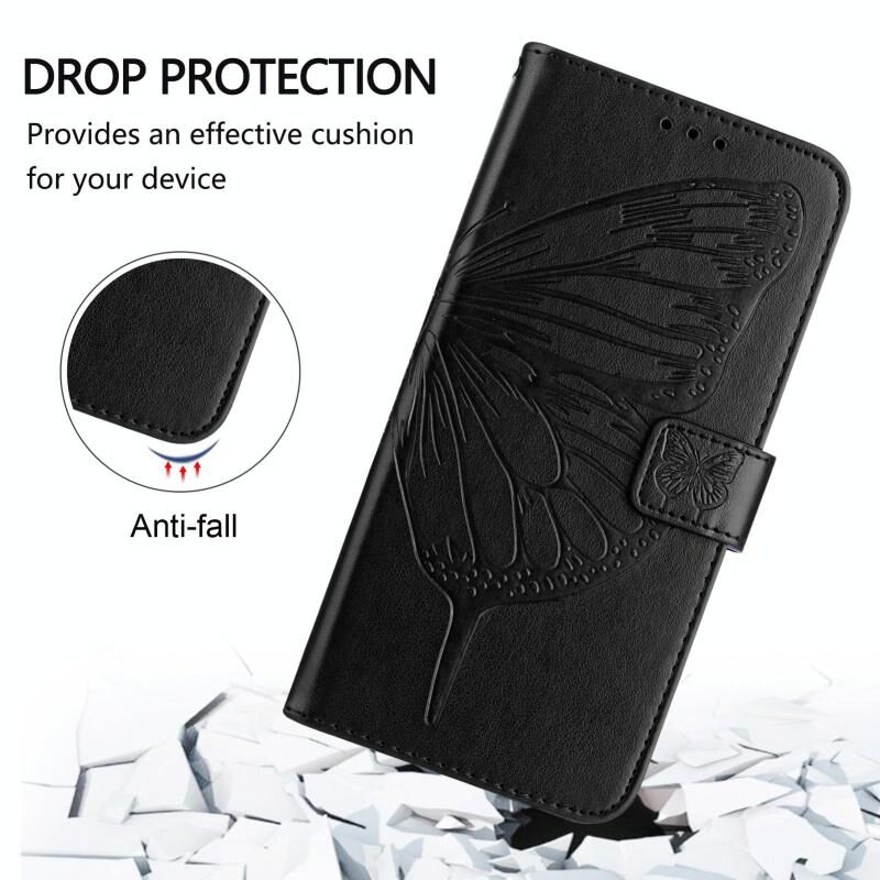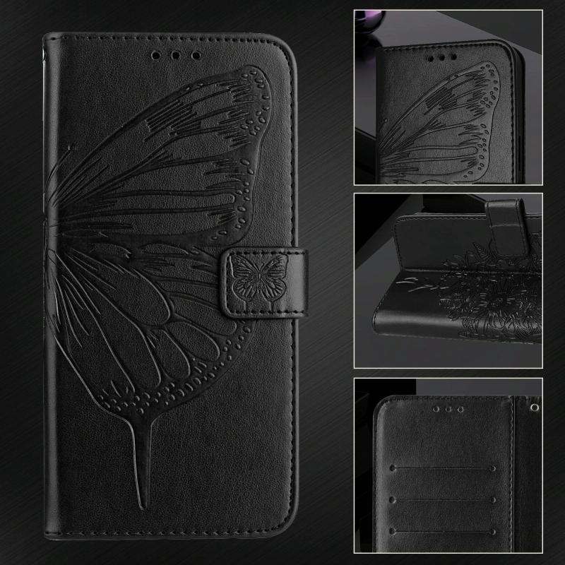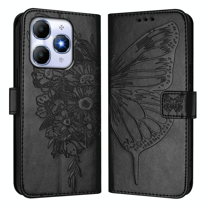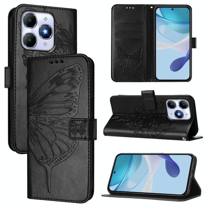 For itel A90 4G Embossed Butterfly Leather Phone Case(Black)