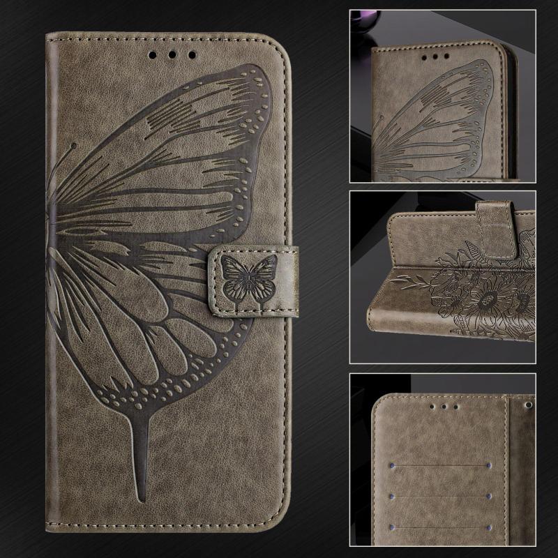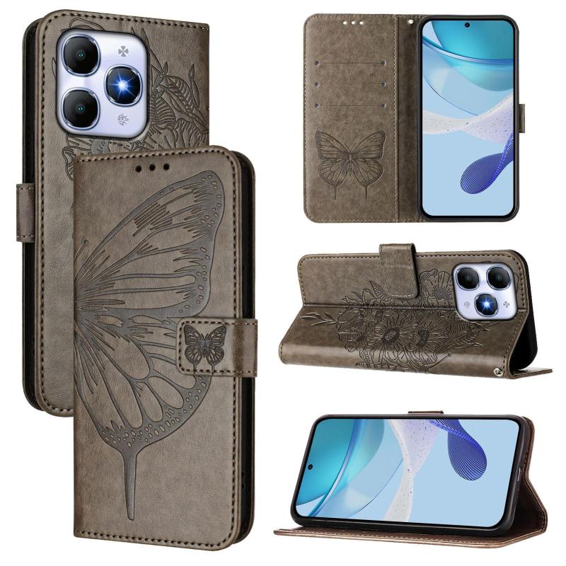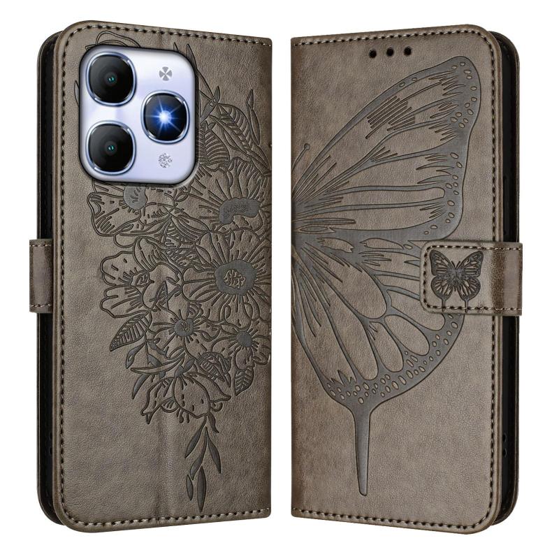 For itel A90 4G Embossed Butterfly Leather Phone Case(Grey)