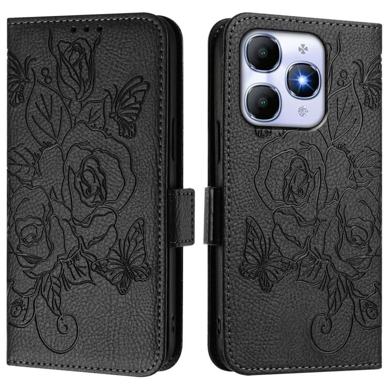 For itel A90 4G Embossed Rose RFID Anti-theft Leather Phone Case(Black)