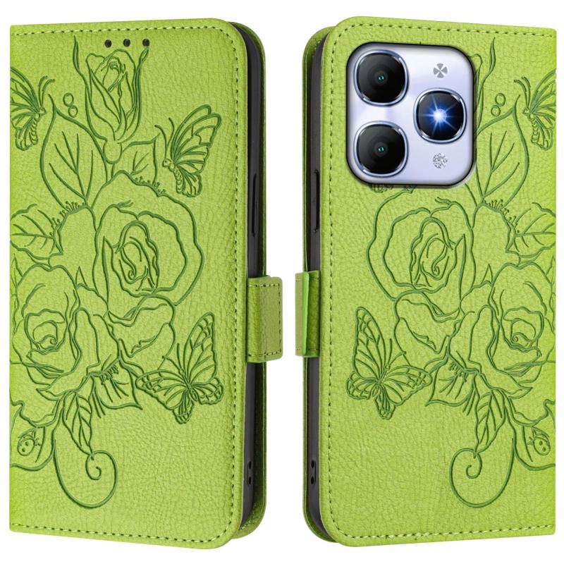 For itel A90 4G Embossed Rose RFID Anti-theft Leather Phone Case(Green)