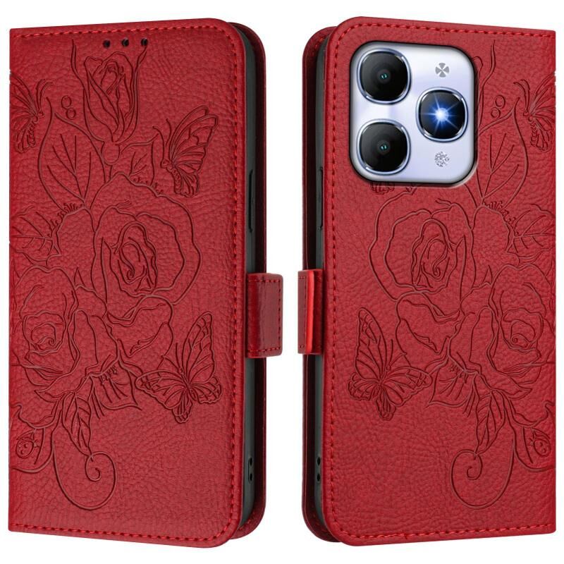 For itel A90 4G Embossed Rose RFID Anti-theft Leather Phone Case(Red)
