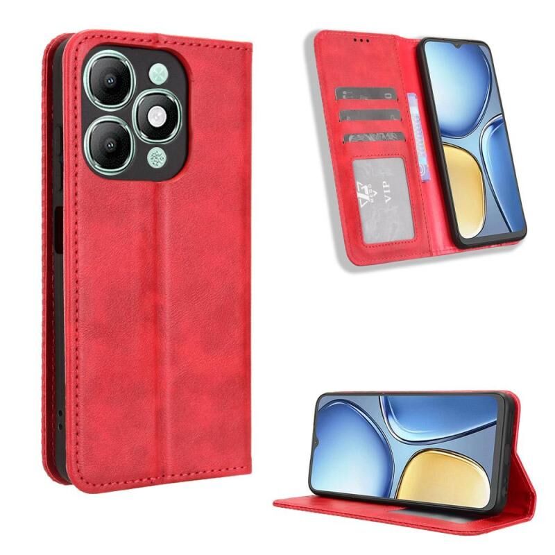 For itel A90 4G Magnetic Buckle Retro Texture Leather Phone Case(Red)