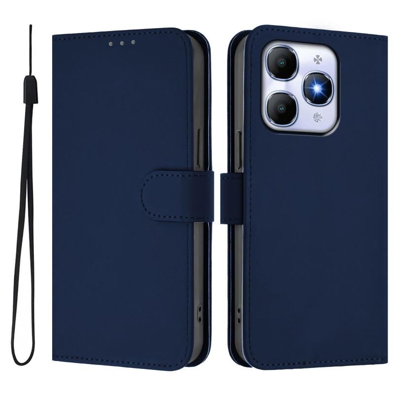 For itel A90 4G Skin Feel Solid Color Leather Phone Case with Lanyard(Navy Blue)