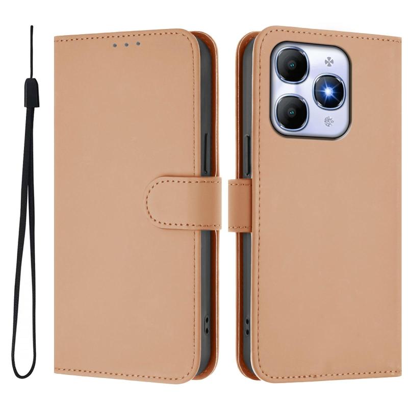 For itel A90 4G Skin Feel Solid Color Leather Phone Case with Lanyard(Nude)