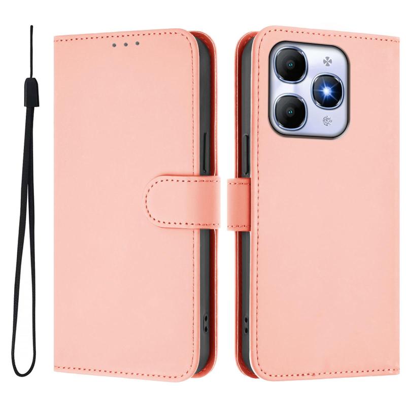 For itel A90 4G Skin Feel Solid Color Leather Phone Case with Lanyard(Pink)
