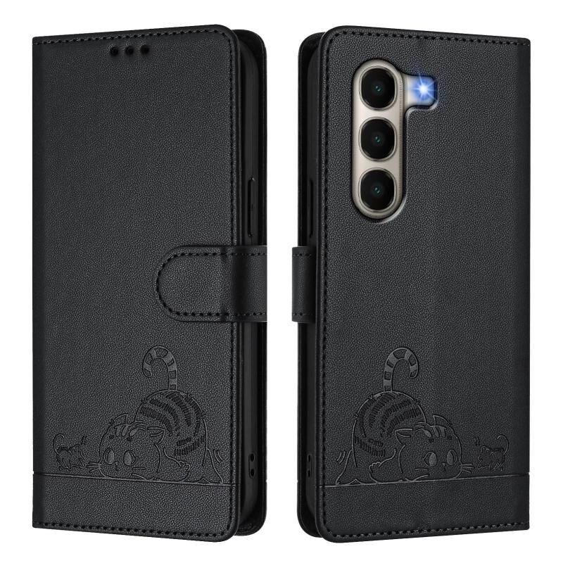 For Itel A95 5G Cat Rat Embossed Pattern RFID Leather Phone Case with Lanyard(Black)