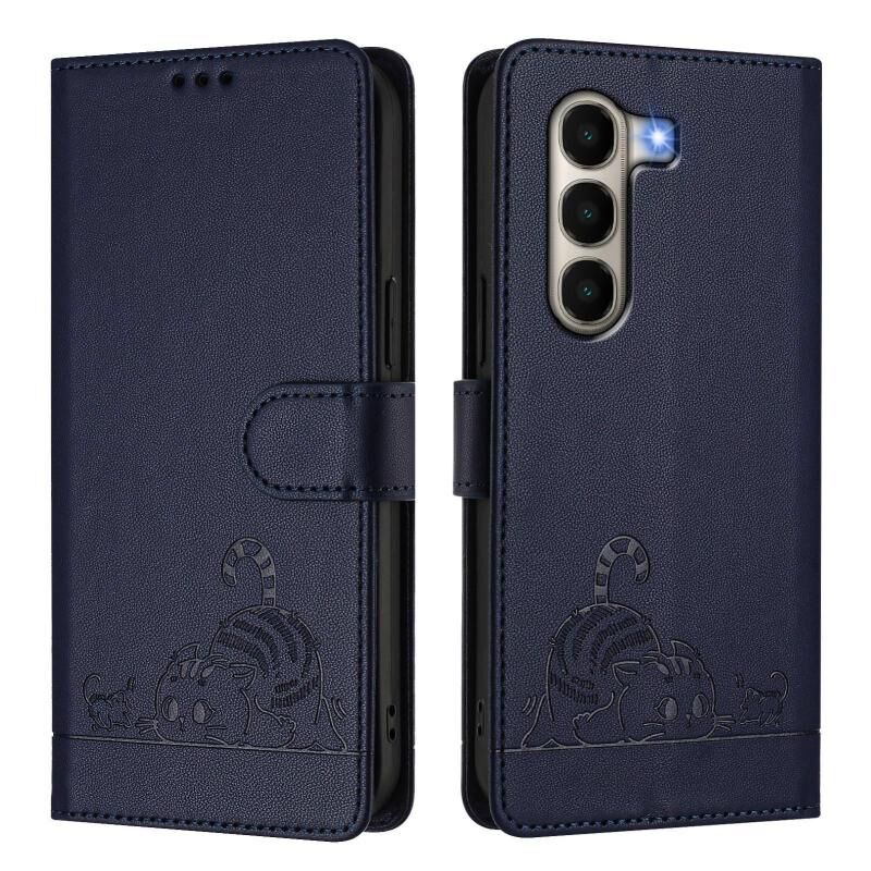 For Itel A95 5G Cat Rat Embossed Pattern RFID Leather Phone Case with Lanyard(Blue)