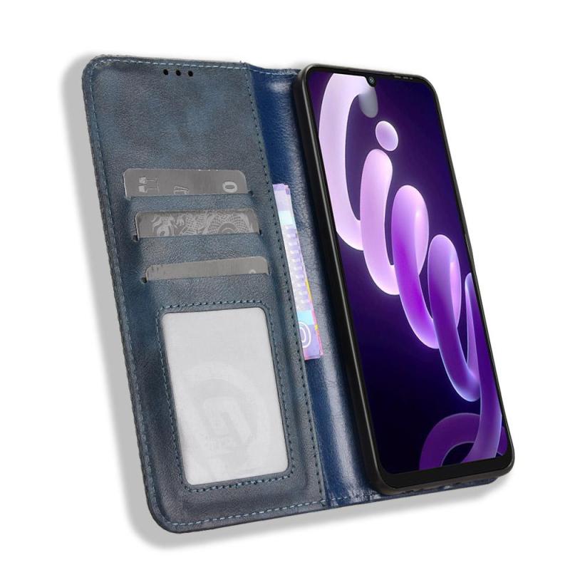 For itel City 100 4G Magnetic Buckle Retro Texture Leather Phone Case(Blue)