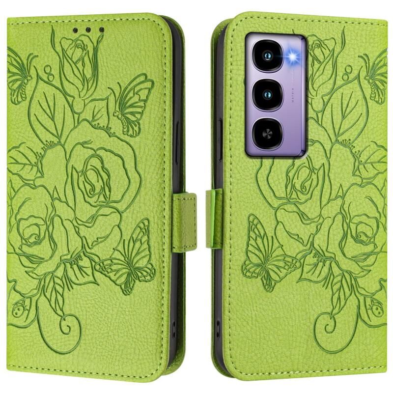 For itel City 100 Embossed Rose RFID Anti-theft Leather Phone Case(Green)