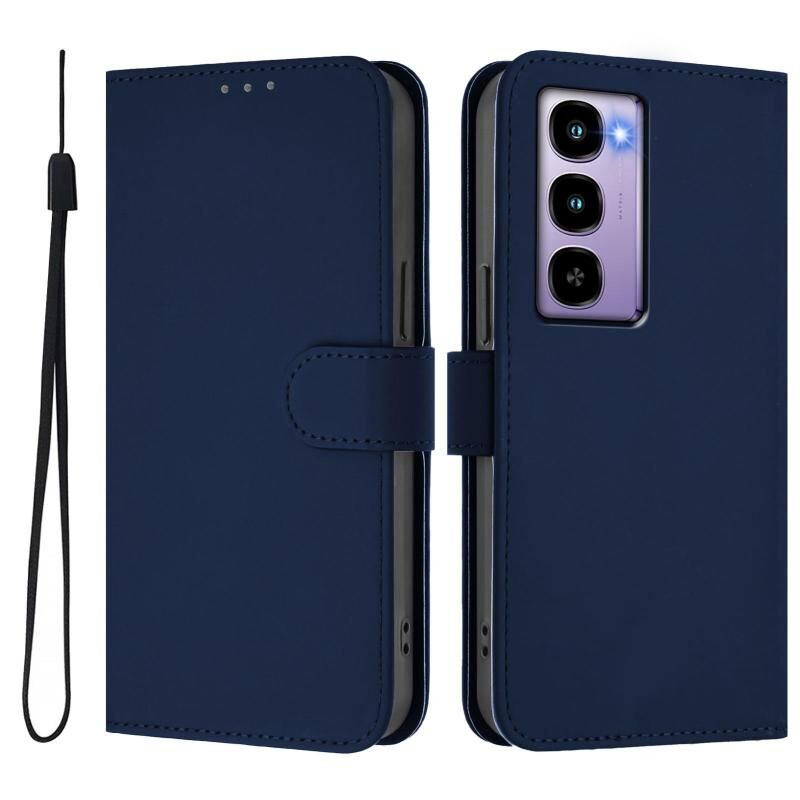 For itel City 100 Skin Feel Solid Color Leather Phone Case with Lanyard(Navy Blue)