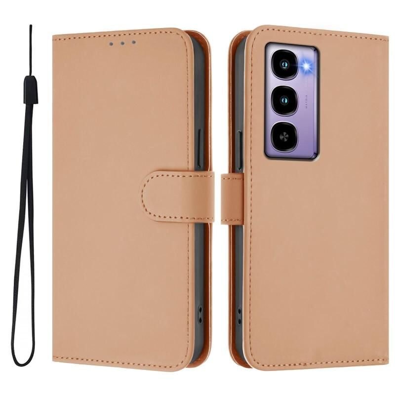 For itel City 100 Skin Feel Solid Color Leather Phone Case with Lanyard(Nude)