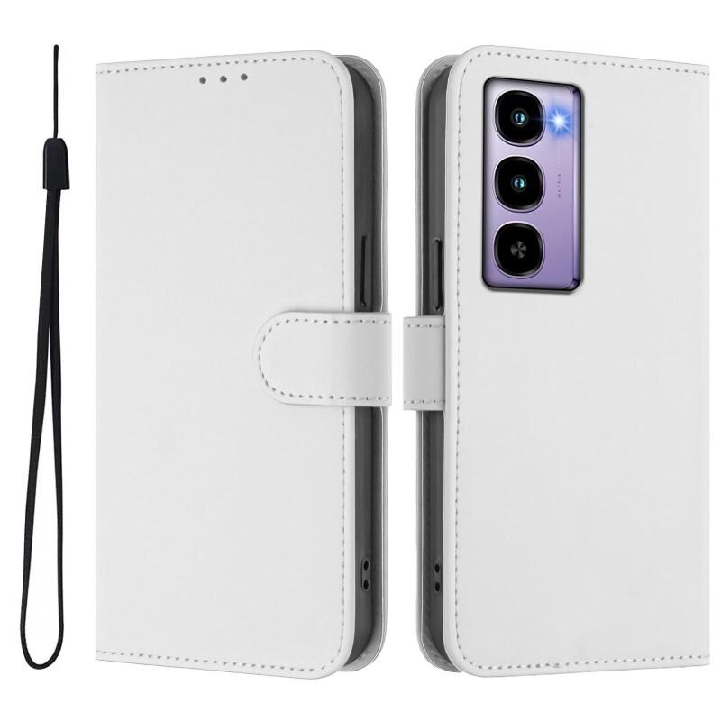 For itel City 100 Skin Feel Solid Color Leather Phone Case with Lanyard(White)