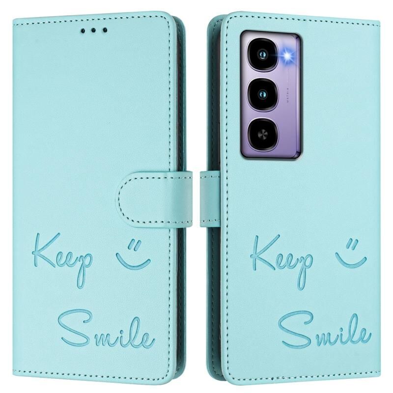 For itel City 100 Smile Embossing RFID Leather Phone Case(Mint Green)