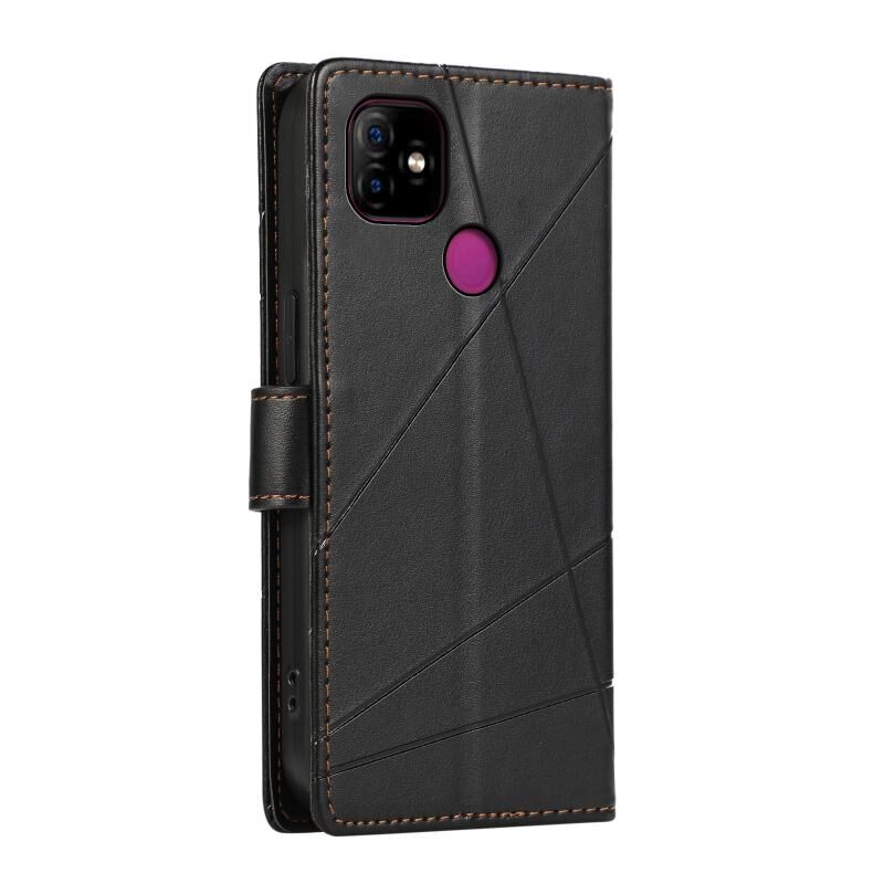 For Itel P36 PU Genuine Leather Texture Embossed Line Phone Case(Black)