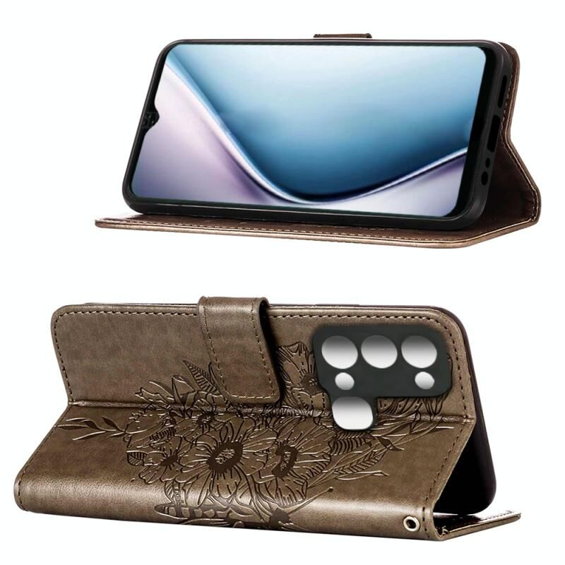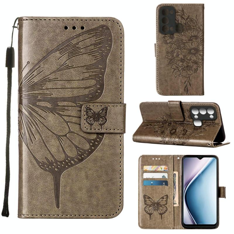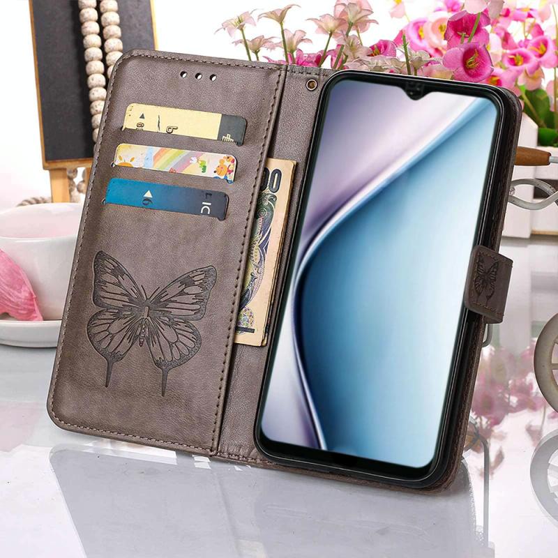 Θήκη τηλεφώνου από δέρμα με ανάγλυφο σχέδιο πεταλούδας, τύπου flip, για Itel P38/S17/S1661W/Vision 3 (Γκρι)