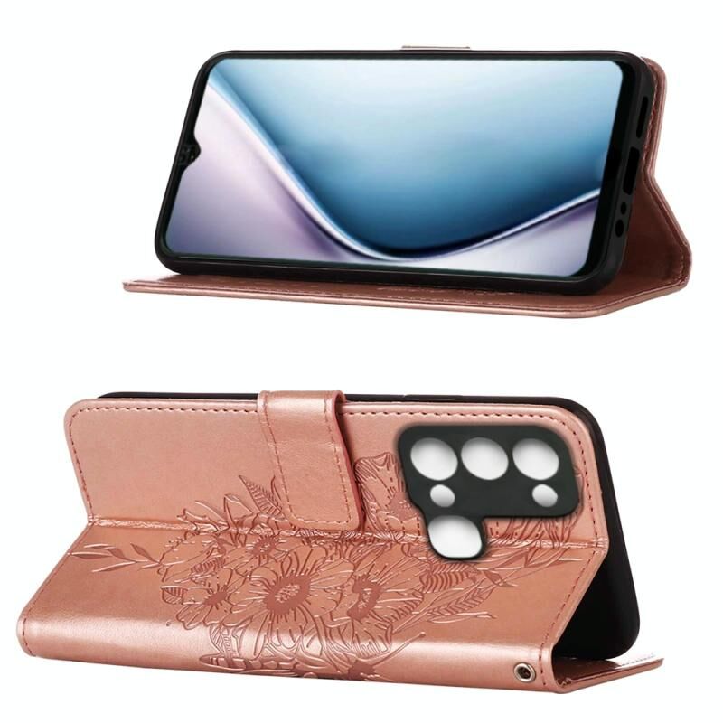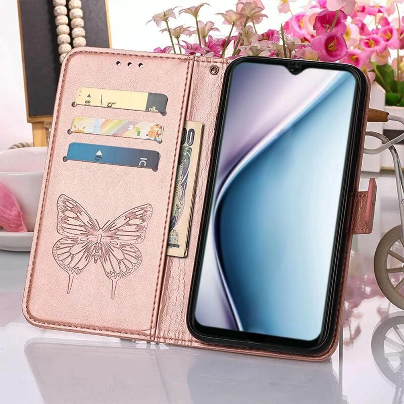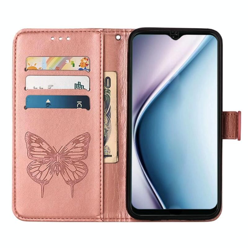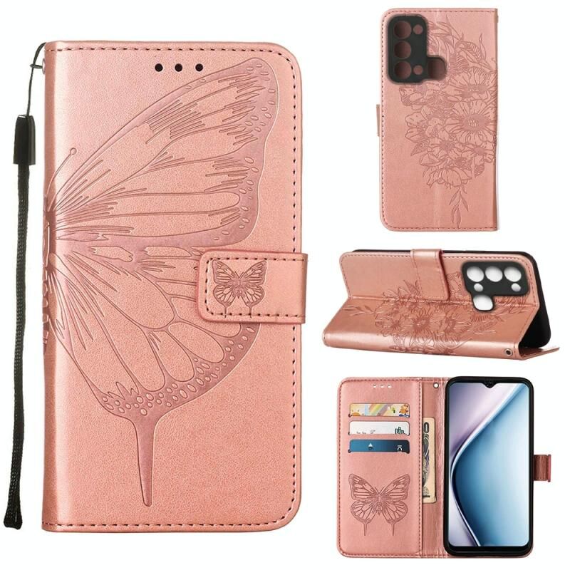 Θήκη τηλεφώνου από δέρμα με ανάγλυφο σχέδιο πεταλούδας, τύπου flip, για Itel P38/S17/S1661W/Vision 3 (Ροζ χρυσός)