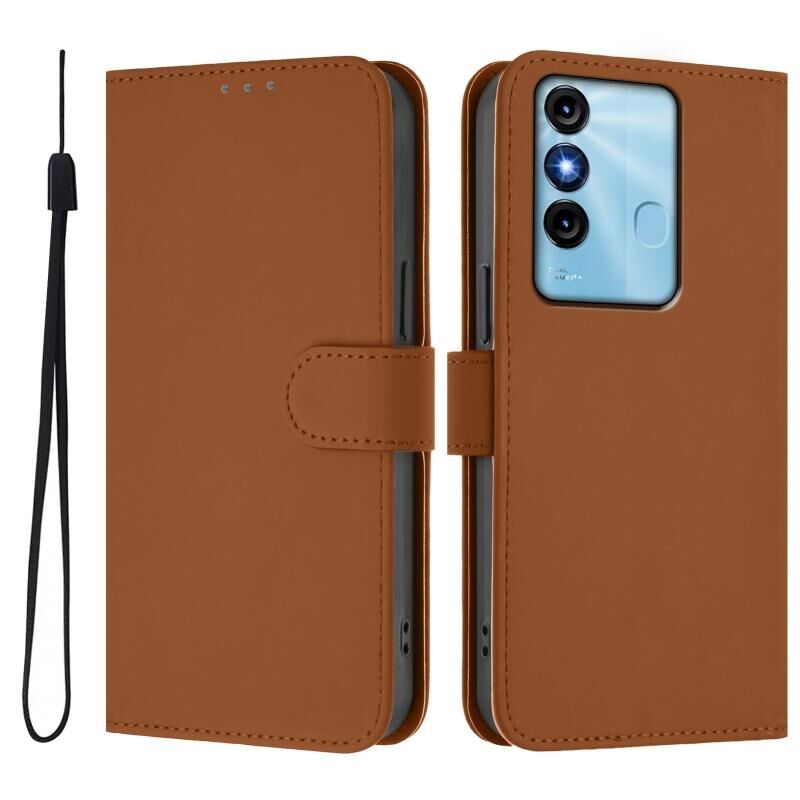 Για το itel P38 / Vision 3 Skin Feel Solid Color δερμάτινη θήκη τηλεφώνου με κορδόνι (Καφέ)