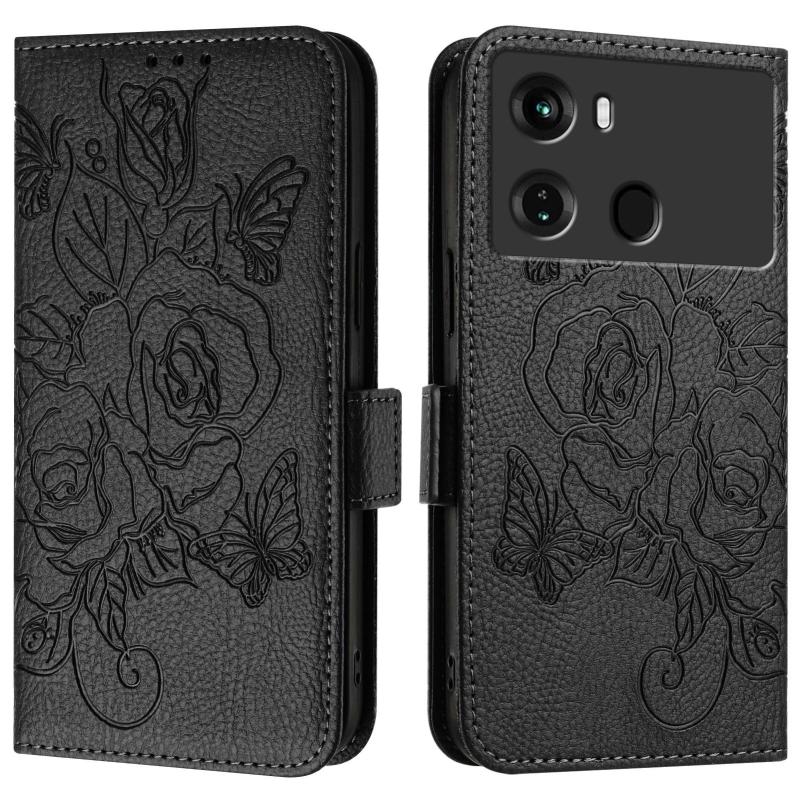 For itel P40 Embossed Rose RFID Anti-theft Leather Phone Case(Black)