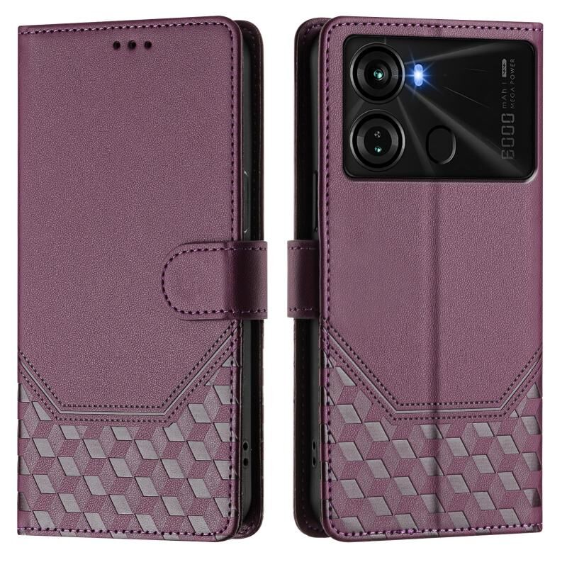 Για itel P40 Honeycomb ανάγλυφο RFID δερμάτινη θήκη τηλεφώνου (Violet)