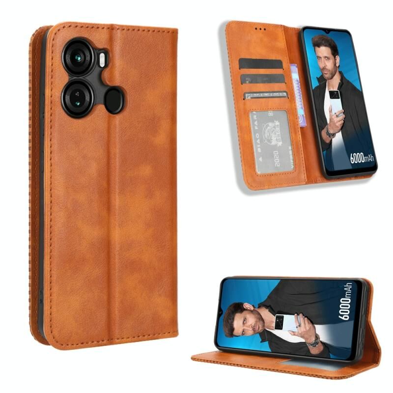 Για Itel P40 Μαγνητική πόρπη ρετρό υφή δερμάτινη θήκη τηλεφώνου (καφέ)