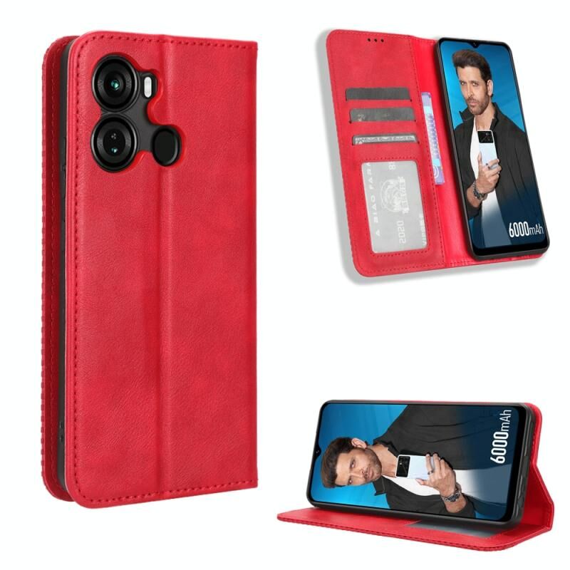 Για Itel P40 Μαγνητική πόρπη ρετρό υφή δερμάτινη θήκη τηλεφώνου (κόκκινο)