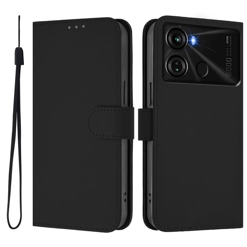 Για το itel P40 Skin Feel Solid Color δερμάτινη θήκη τηλεφώνου με κορδόνι (Μαύρο)