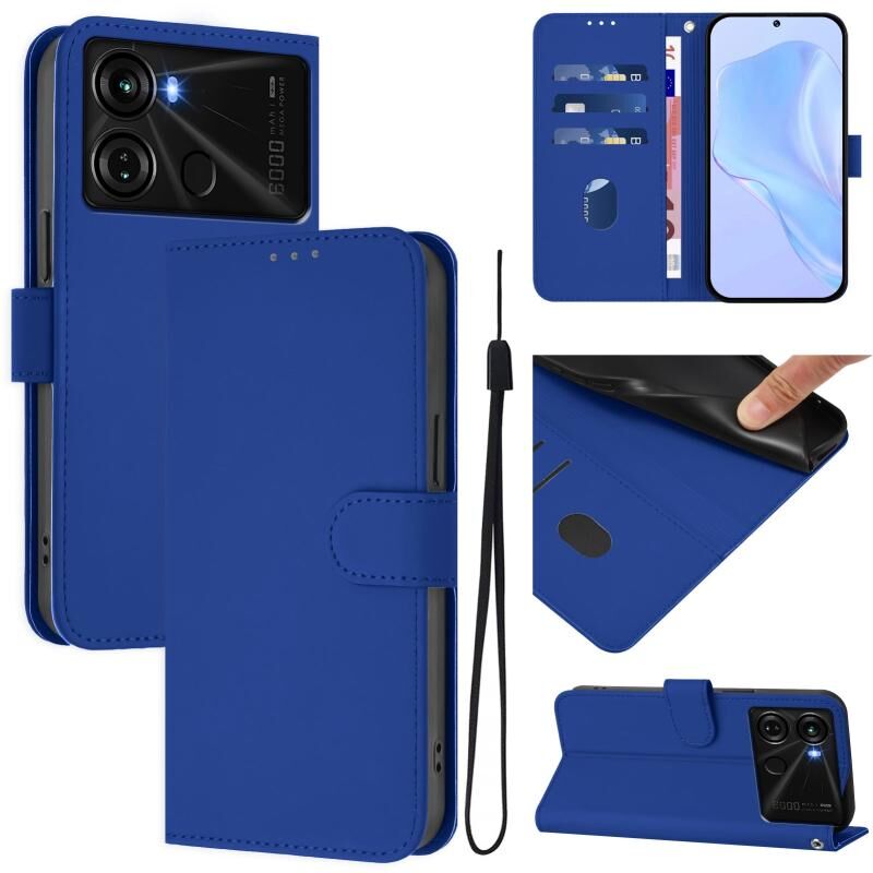 Για το itel P40 Skin Feel Solid Color δερμάτινη θήκη τηλεφώνου με κορδόνι (σκούρο μπλε)