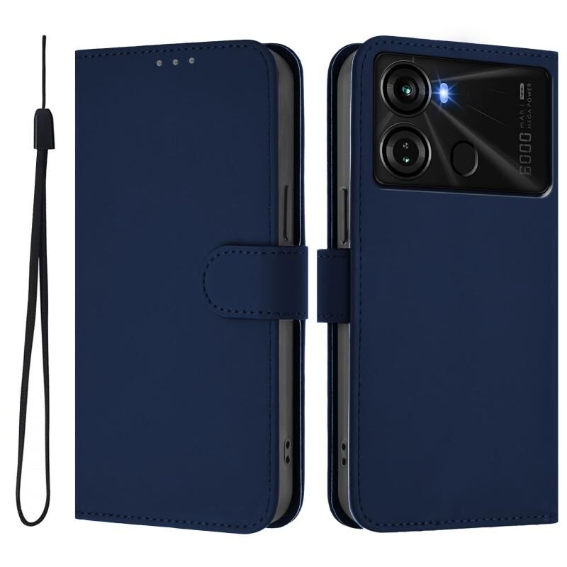 Για το itel P40 Skin Feel Αμιγές χρώμα δερμάτινη θήκη τηλεφώνου με κορδόνι (Ναυτικό μπλε)