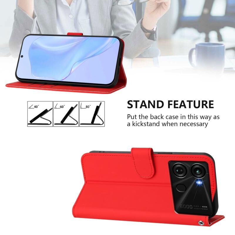 Για το itel P40 Skin Feel Solid Color δερμάτινη θήκη τηλεφώνου με κορδόνι (Κόκκινο)