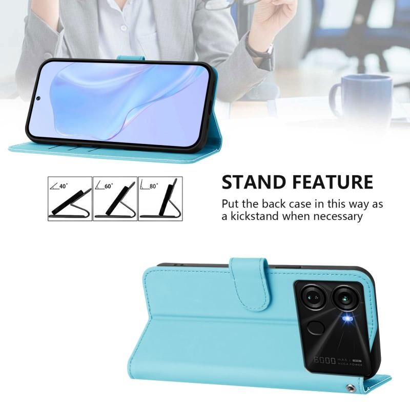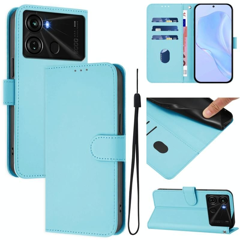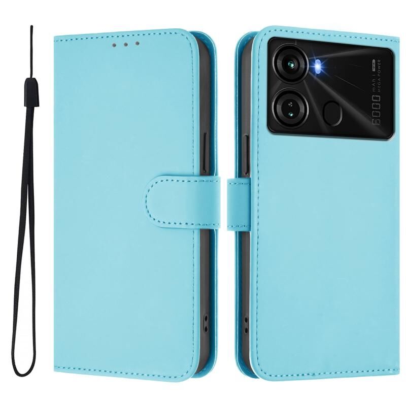 Για το itel P40 Skin Feel Solid Color δερμάτινη θήκη τηλεφώνου με κορδόνι (Sky Blue)