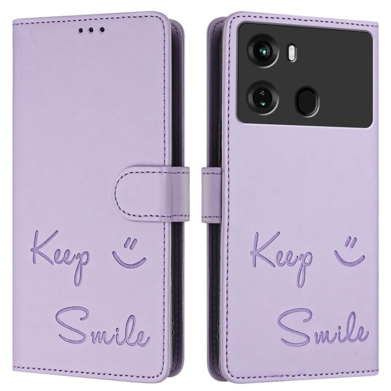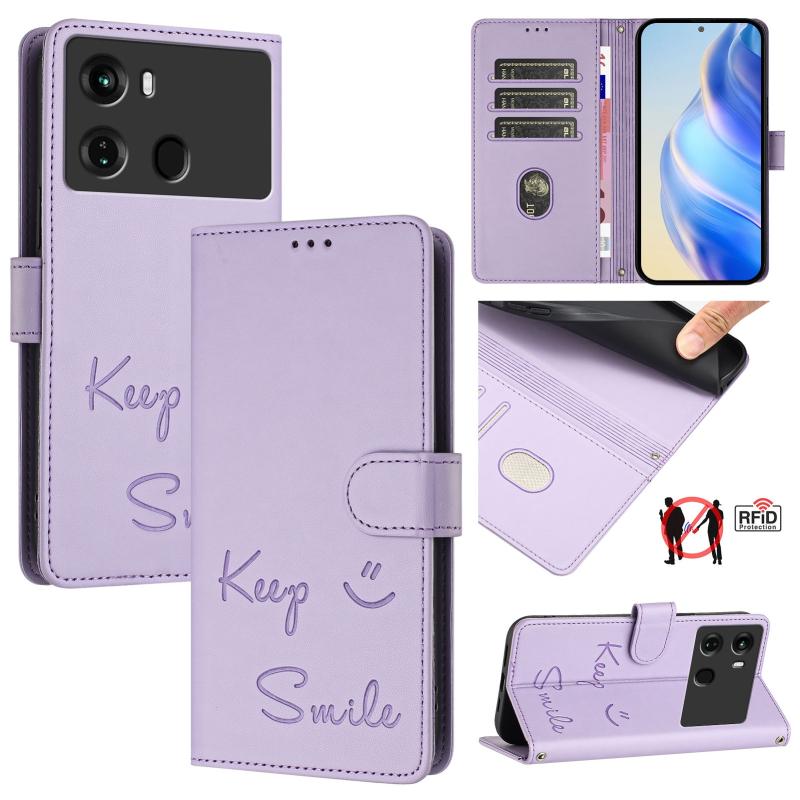 For itel P40 Smile Embossing RFID Leather Phone Case(Light Purple)
