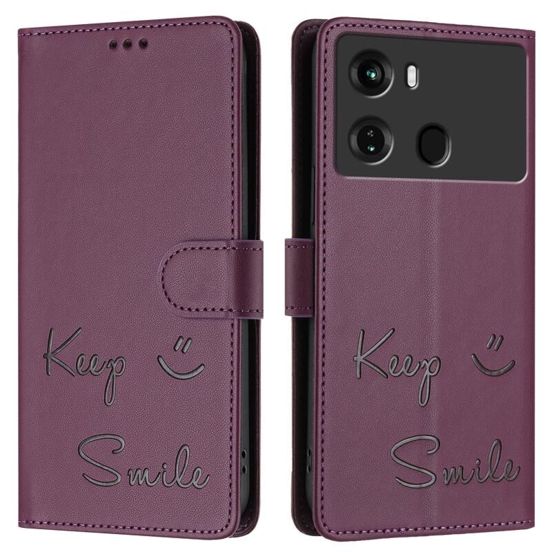 For itel P40 Smile Embossing RFID Leather Phone Case(Violet)