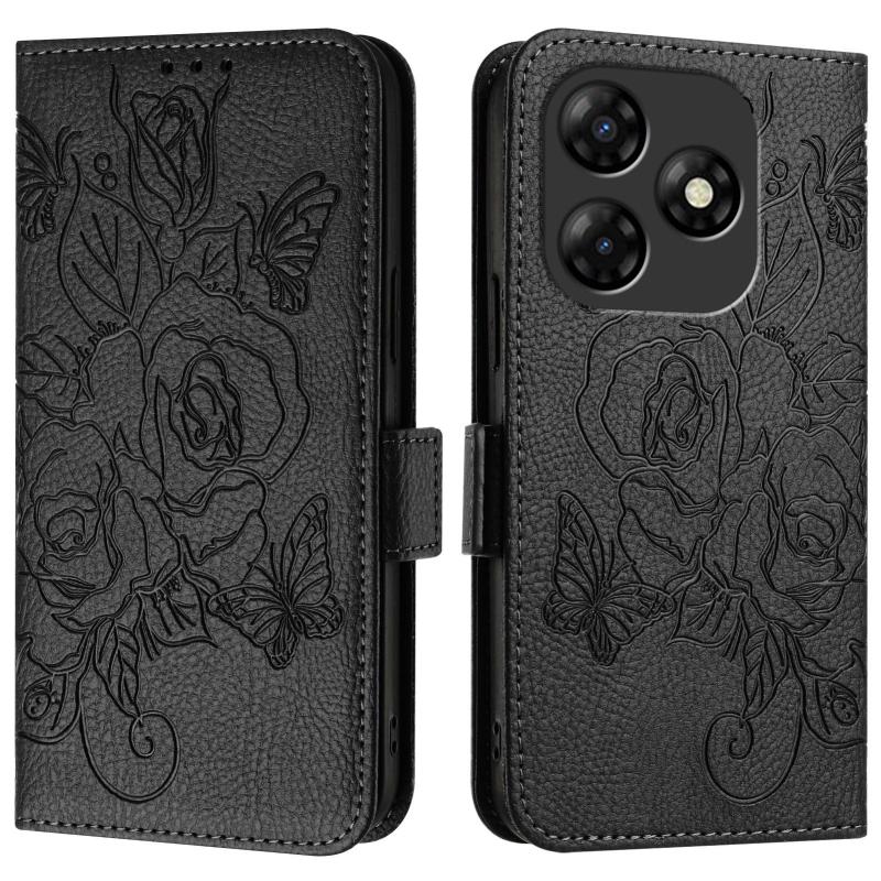 For itel P55 4G Embossed Rose RFID Anti-theft Leather Phone Case(Black)
