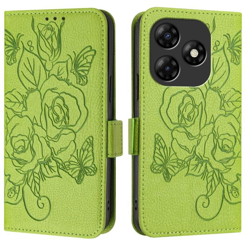 For itel P55 4G Embossed Rose RFID Anti-theft Leather Phone Case(Green)