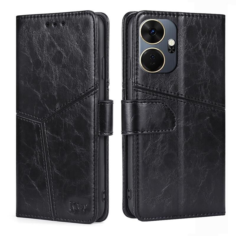 Για Itel P55+ 4G γεωμετρική ραφή δερμάτινη θήκη τηλεφώνου (μαύρο)