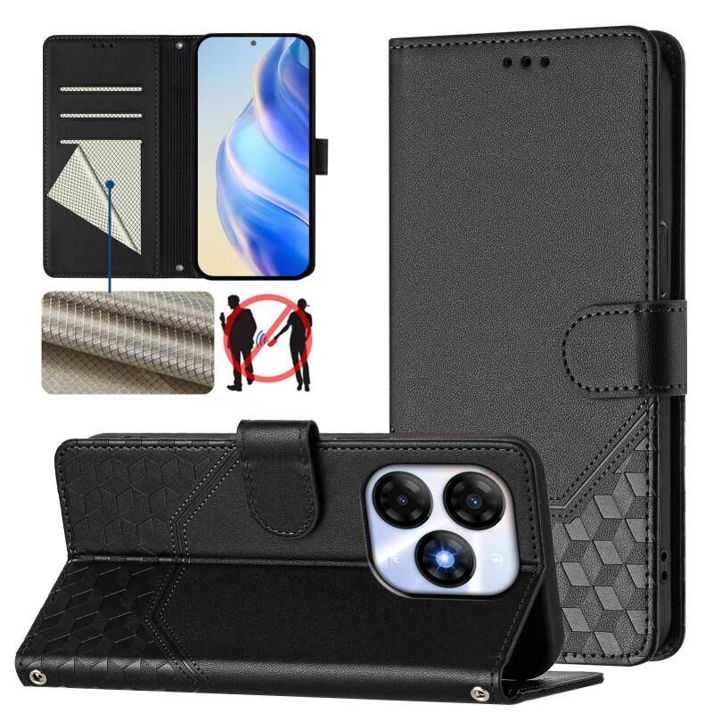 Για itel P55 4G / Infinix Smart 8 Honeycomb ανάγλυφη RFID δερμάτινη θήκη τηλεφώνου (Μαύρο)