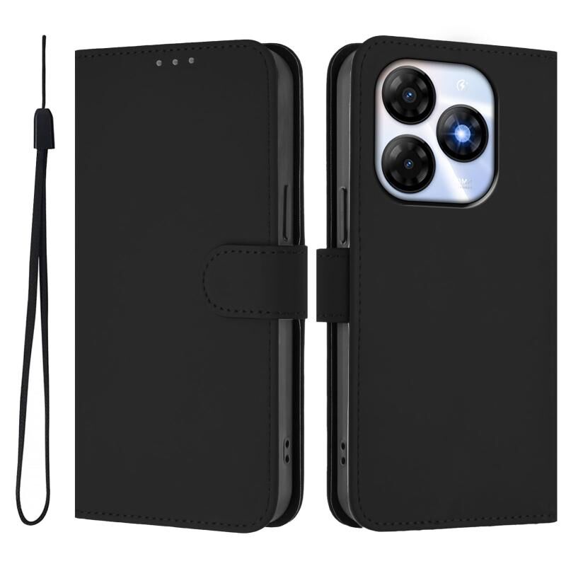 Για το itel P55 4G Skin Feel Solid Color δερμάτινη θήκη τηλεφώνου με κορδόνι (Μαύρο)