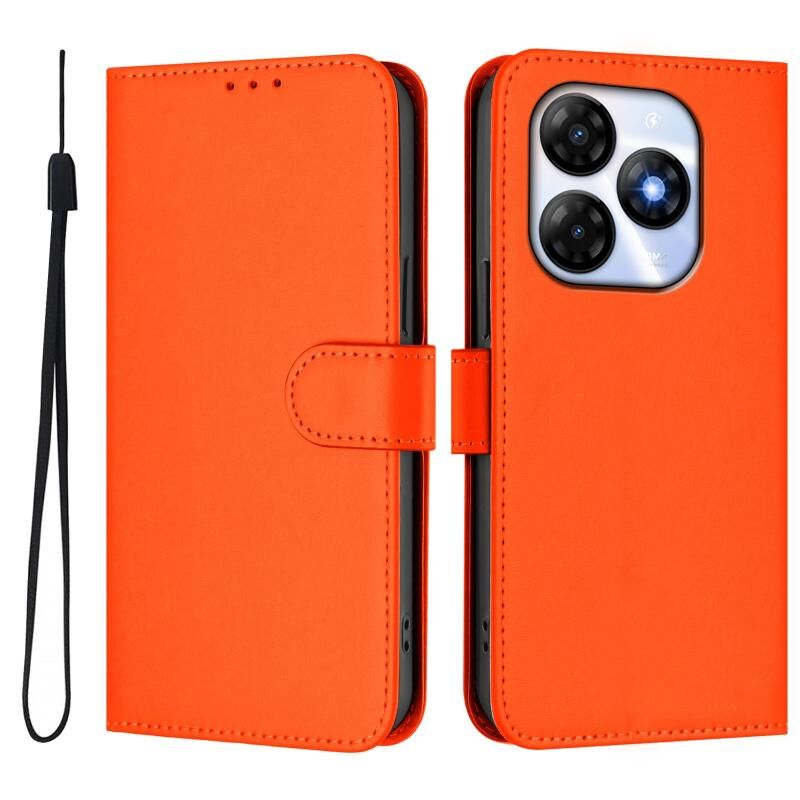 Για το itel P55 4G Skin Feel Solid Color δερμάτινη θήκη τηλεφώνου με κορδόνι (πορτοκαλί)