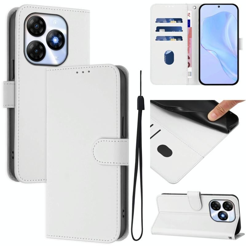 Για το itel P55 4G Skin Feel Solid Color δερμάτινη θήκη τηλεφώνου με κορδόνι (λευκό)