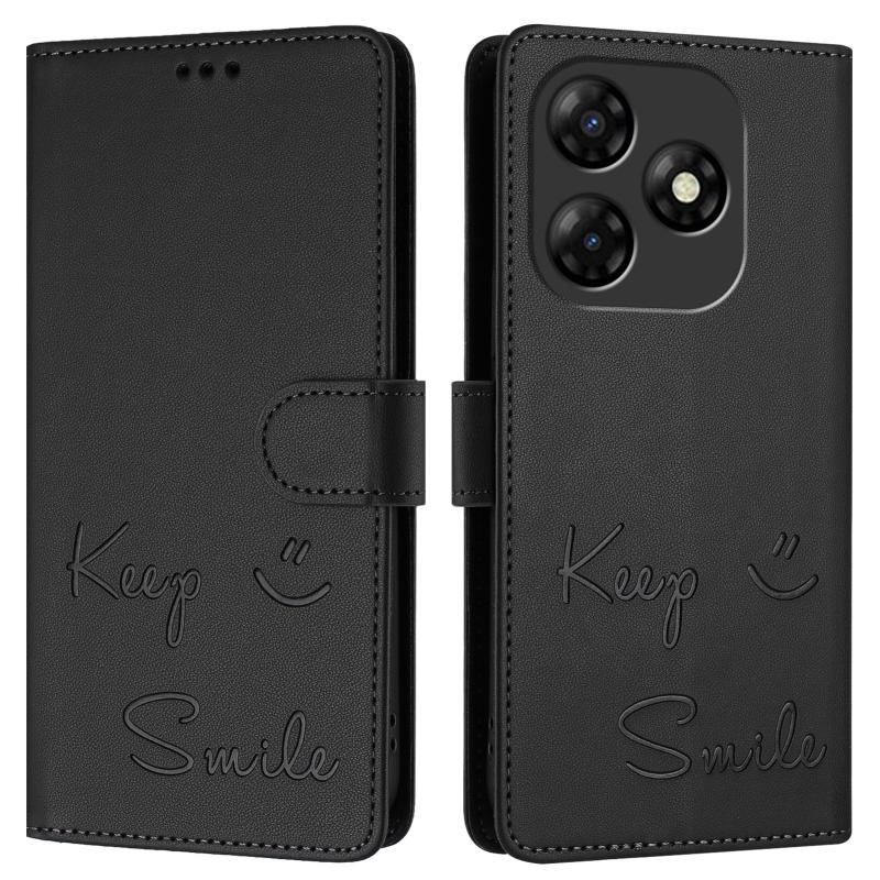 For itel P55 4G Smile Embossing RFID Leather Phone Case(Black)