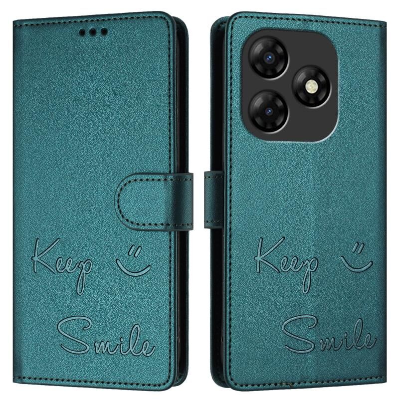 For itel P55 4G Smile Embossing RFID Leather Phone Case(Peacock Green)