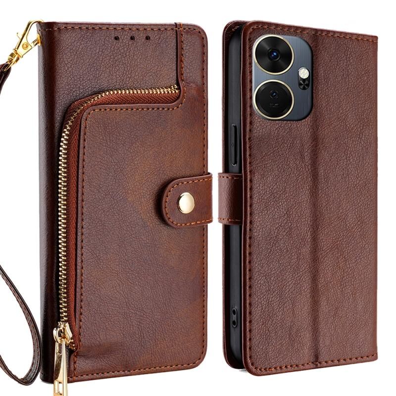 Για Itel P55+ 4G φερμουάρ τσάντα δερμάτινη θήκη τηλεφώνου (καφέ)